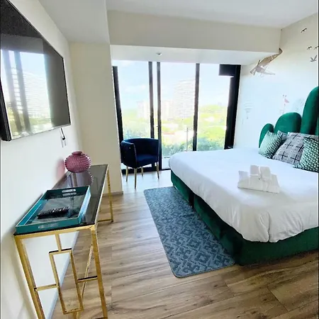 The 5-room Suite Diamante Guadalajara, located in the Financial district, approximately a 25-minute walk from Bosque Los Colomos, features views of the private pool. Situated a few minutes' drive from Centro Deportivo Enrique Ladron de Guevara, this 250 m^2 apartment offers a private swimming pool for guests' enjoyment.